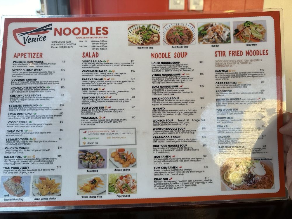 Welcome to Venice Noodles, a delightful sanctuary for Thai cuisine located at 10953 Venice Blvd, Los Angeles. This vibrant eatery embraces the essence of Thailand, showcasing an impressive array of flavors through fresh salads, stir-fried noodles, and tempting desserts. Delight in the Beef Salad, featuring grilled sirloin paired with a zesty lime dressing, or indulge in the aromatic Drunken Noodle, where flat rice noodles meet a spicy brown sauce.